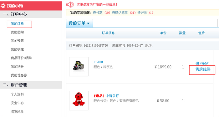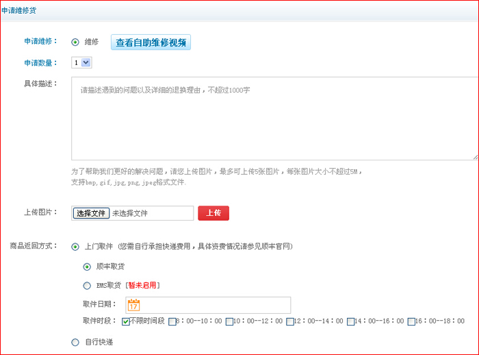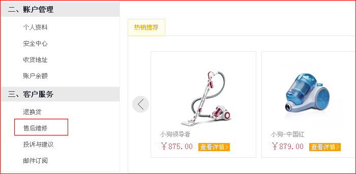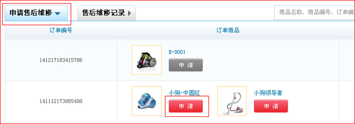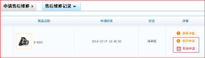 本商城申請售后維修